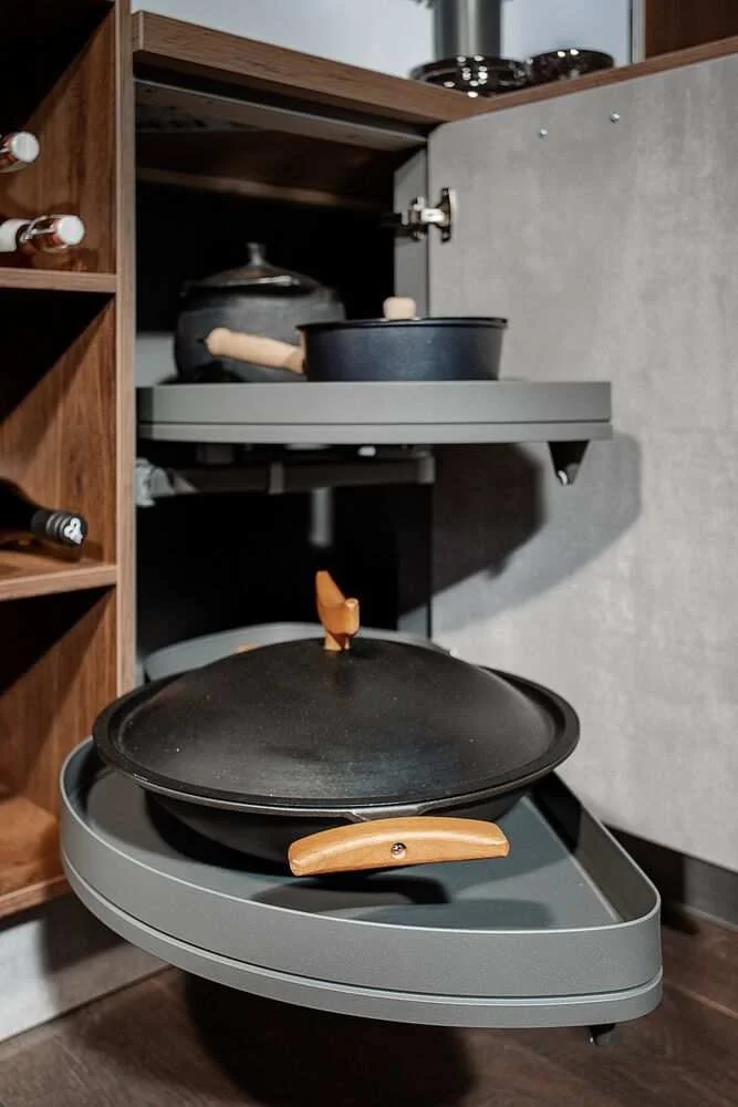 Corner Cabinets with Lazy Susans: Utilize tricky spaces with rotating shelves to ensure easy access and optimal storage.